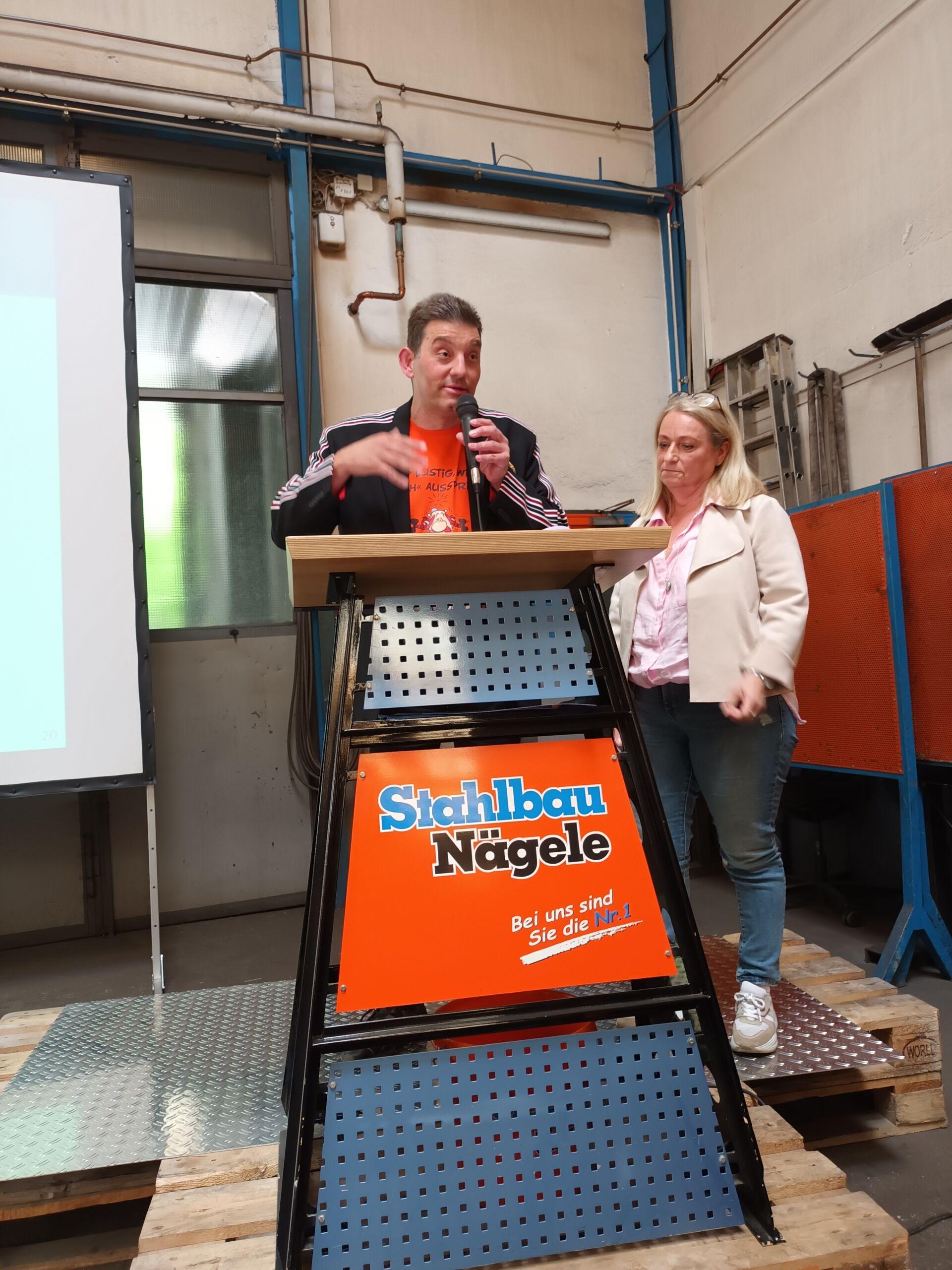 Besonders erfreulich war der Auftritt unserer beiden neu gewählten Azubi-Vertreterinnen, die einen wertvollen Beitrag zum Thema Ausbildung bei Stahlbau Nägele leisteten und aktuelle Anliegen der Auszubildenden präsentierten.