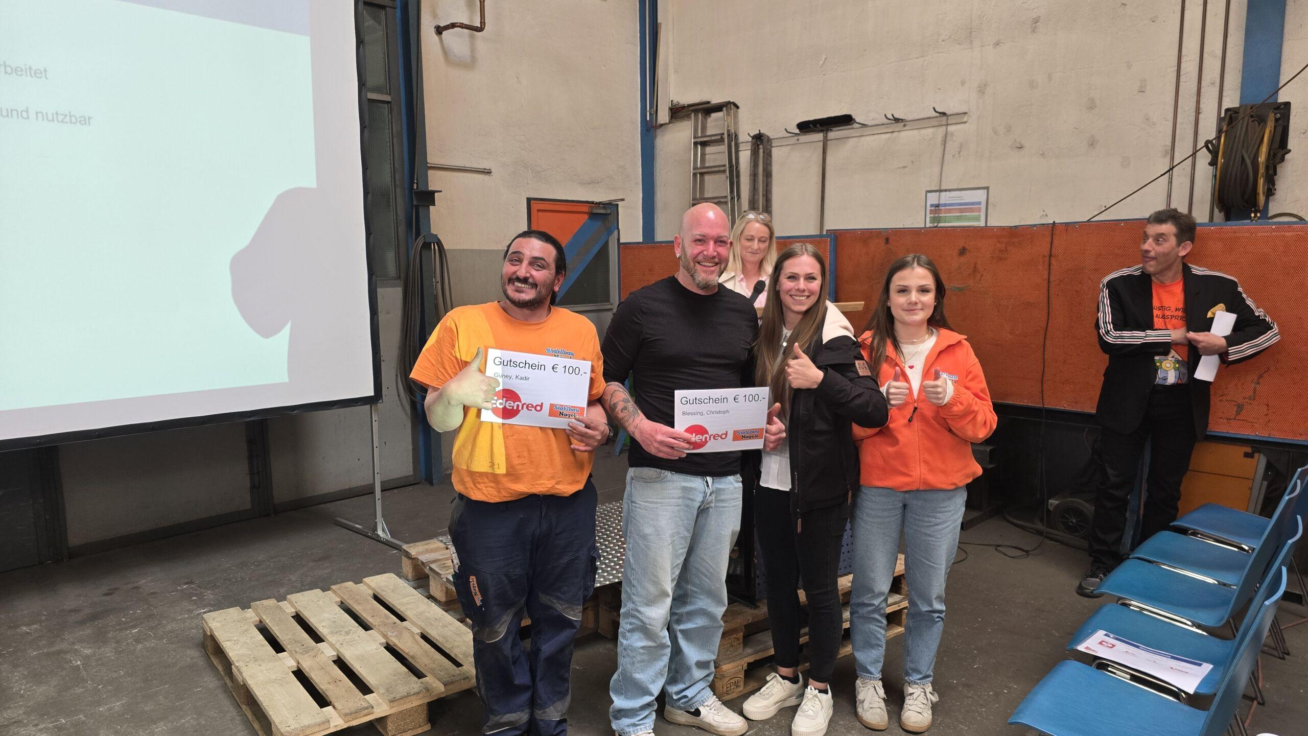 Für ihre eingereichten Verbesserungsvorschläge wurden sie mit je 100 € belohnt!